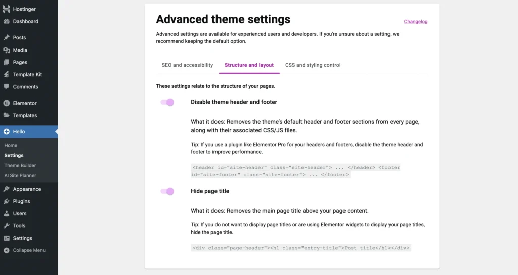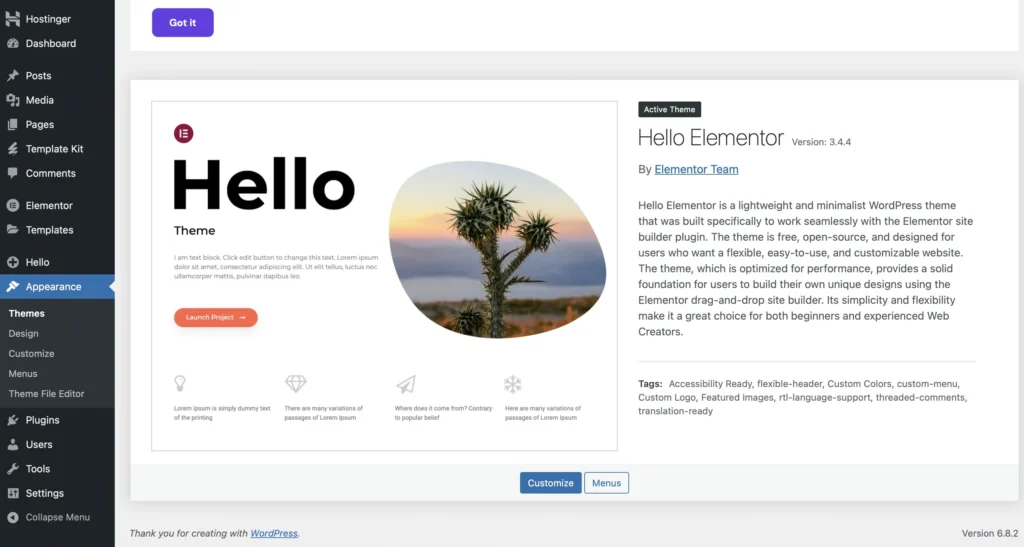 To fully use the custom header and footer included in this kit, you’ll need to disable the default ones from the Hello Elementor theme. If you’re using another theme instead of Hello, you’ll also need to remove its header and footer to avoid conflicts.